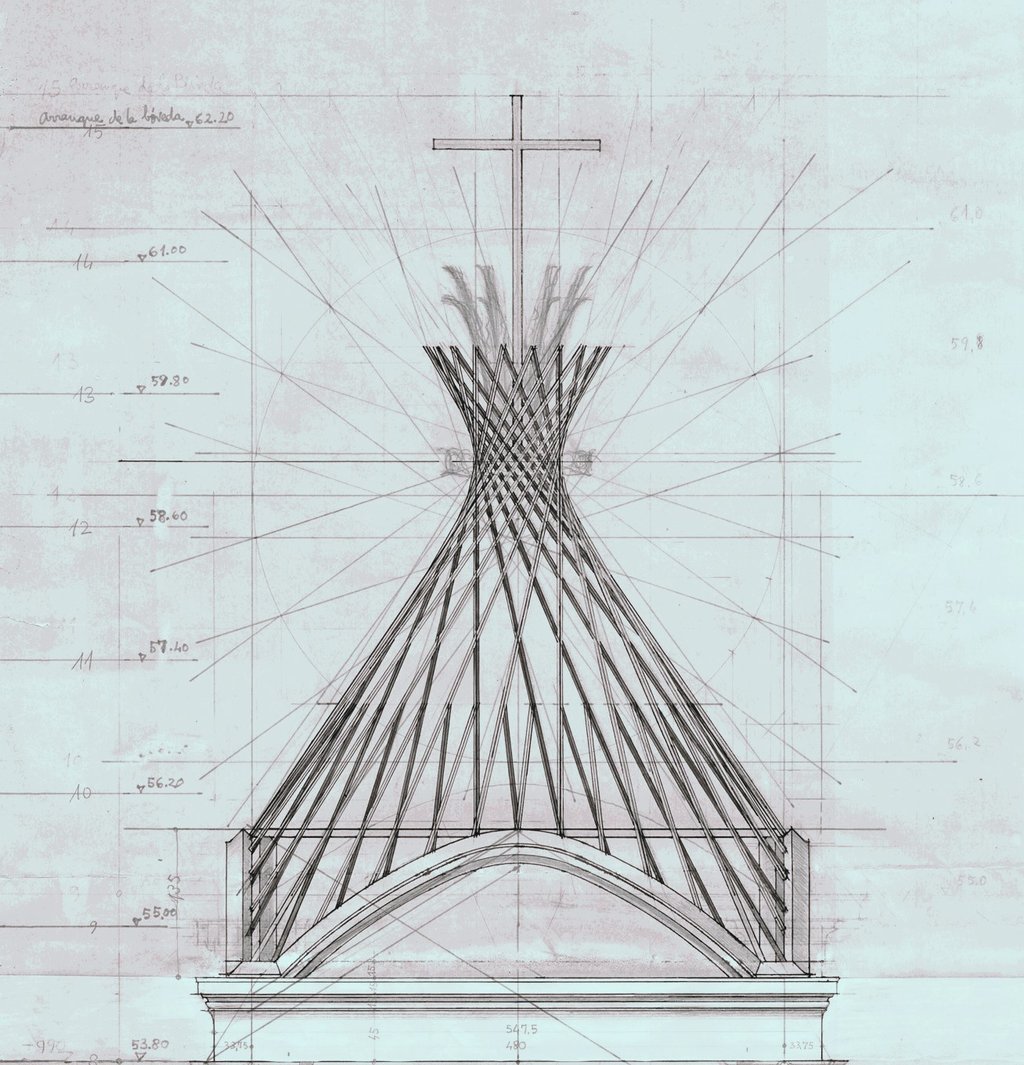 Se puede ver en el apartado de Arquitectura, en las cruces de la iglesia y la torre.