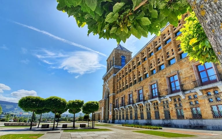 El arquitecto Luis Moya , proyecto la Universidad Laboral de Gijón , con una mezcla de arquitectura clasicista y condicionado por las normas impuestas por el patronato promotor de la obra , integrando su arquitectura dentro del peculiar entorno del valle donde se encuentra