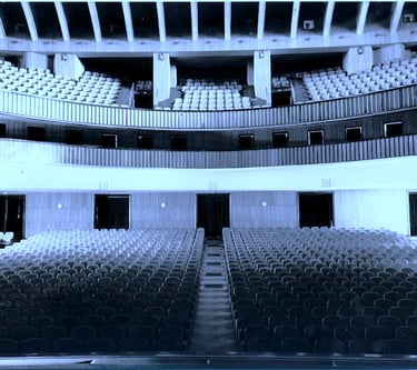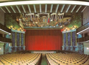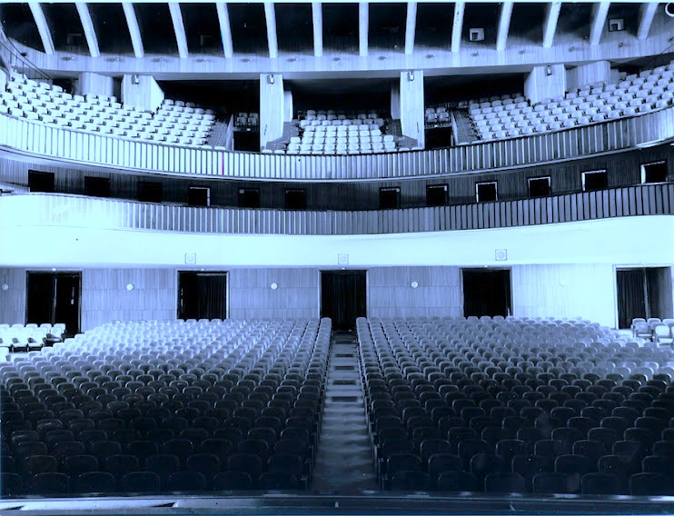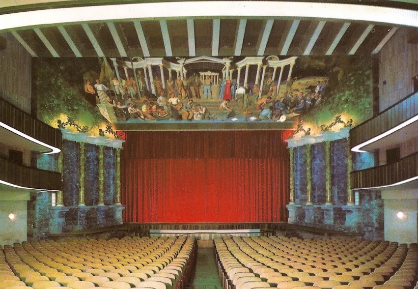 La desaparición de todo esto y del mural del frontispicio con la renovación completa del escenario y caja escénica , ha supuesto paralelamente , una desideologización del teatro.