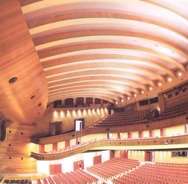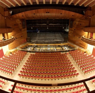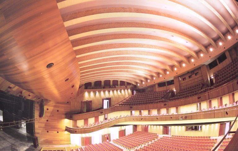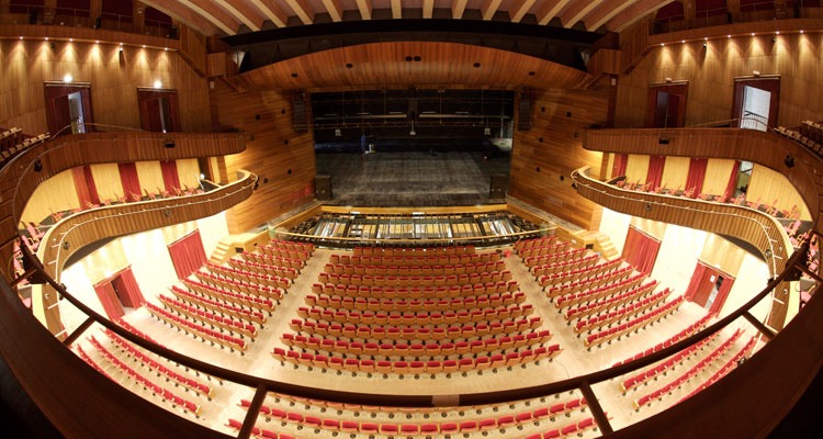 La sala tiene la forma de abanico y el techo curvo para conseguir el mínimo volumen que conviene a la buena audición .El techo curvo , presenta la particularidad de estar formado por 18 arcos de ladrillo de 22 metros de luz, en los cuales se ha dejado la fabrica de ladrillo sin revestir
