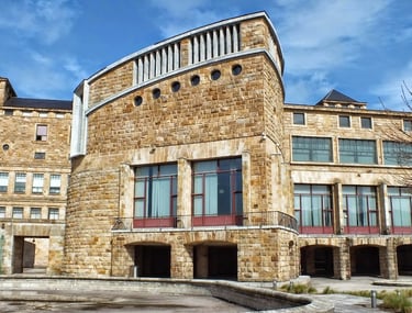 se podría decir que el edificio del paraninfo por singularidad , da la impresión de una anomalía que sorprende a primera vista , por lo que parece una contradicción con el resto de la fachada , pero encajando perfectamente con la misma .