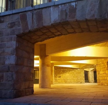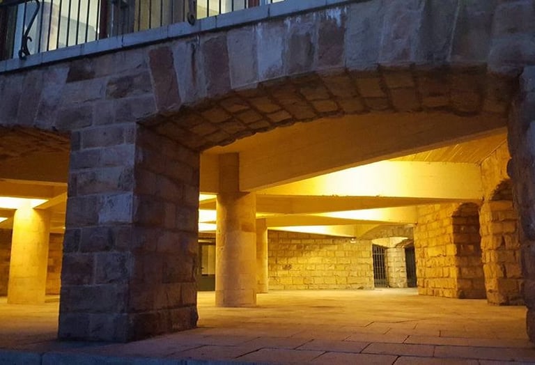 FOTO DONDE SE ve , los pilares y vigas que soportan el paraninfo