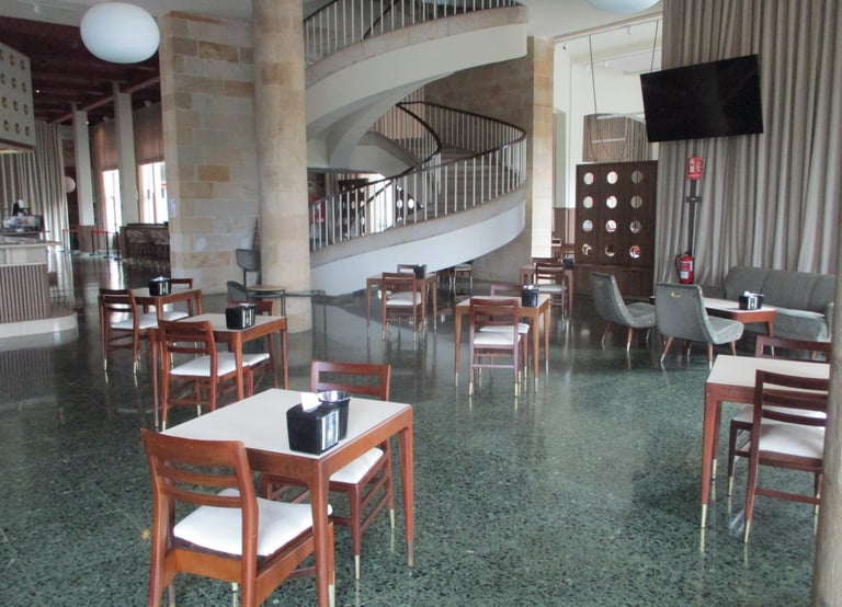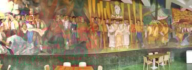 actual zona de la cafetería 2024 con el gran mural de francisco arias al fondo
