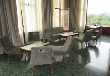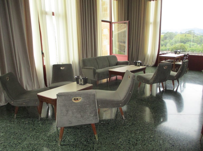 sala de descanso del Interior de la cafetería con la escalera al paraninfo