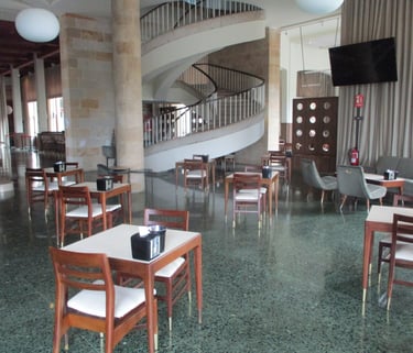 actual zona de descanso de la cafetería 2024 con la escalera de subida al paraninfo
