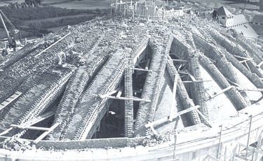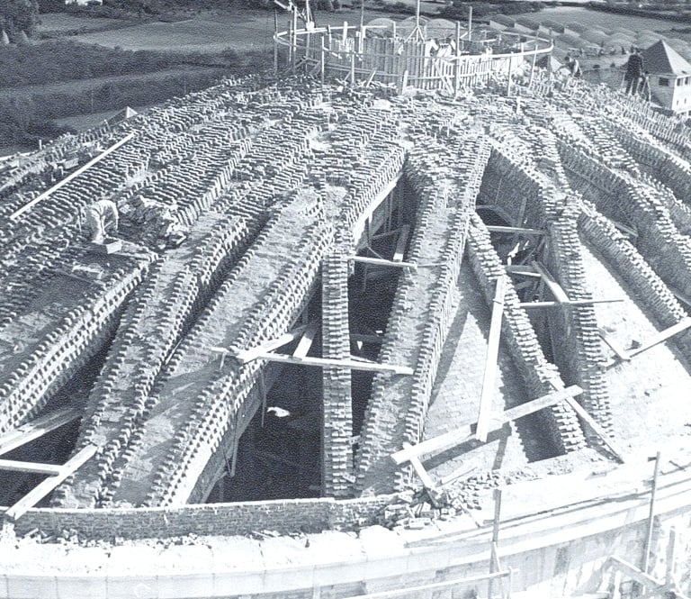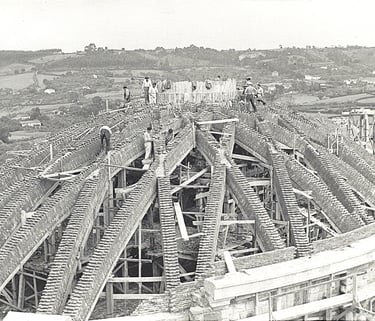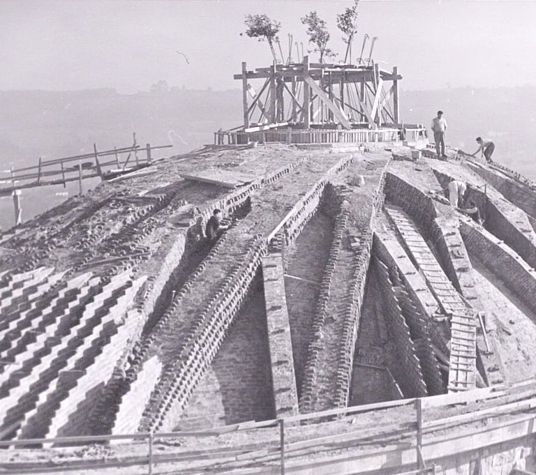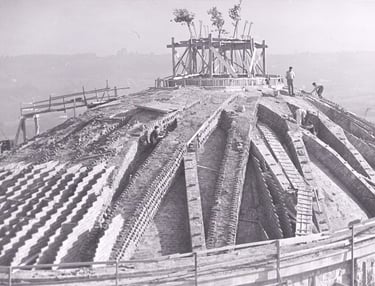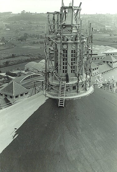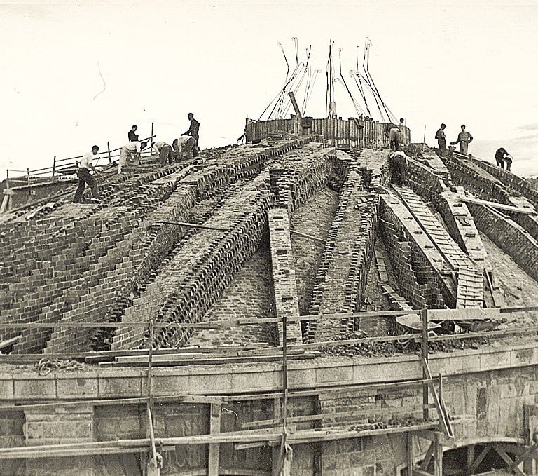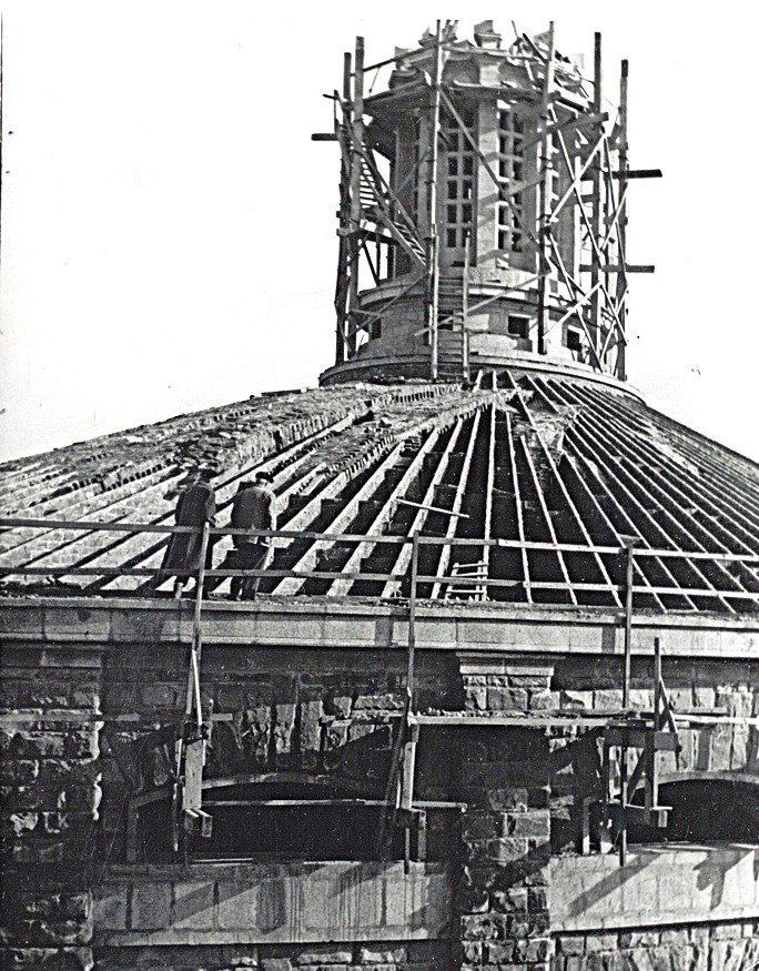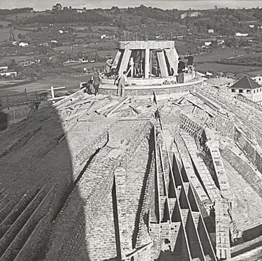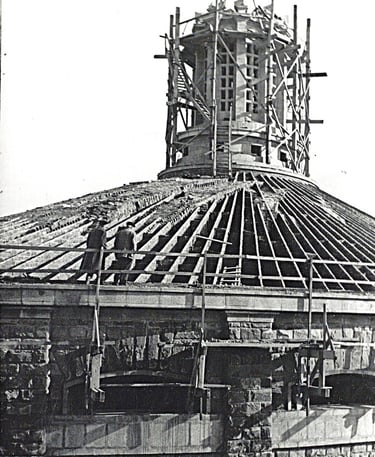 serie fotográfica DE LA evolución en las diversas fases Constructivas DE LA CUPULA DE LA IGLESIA por el exterior