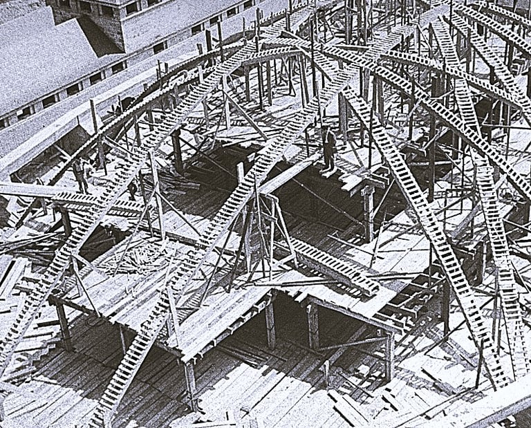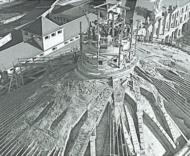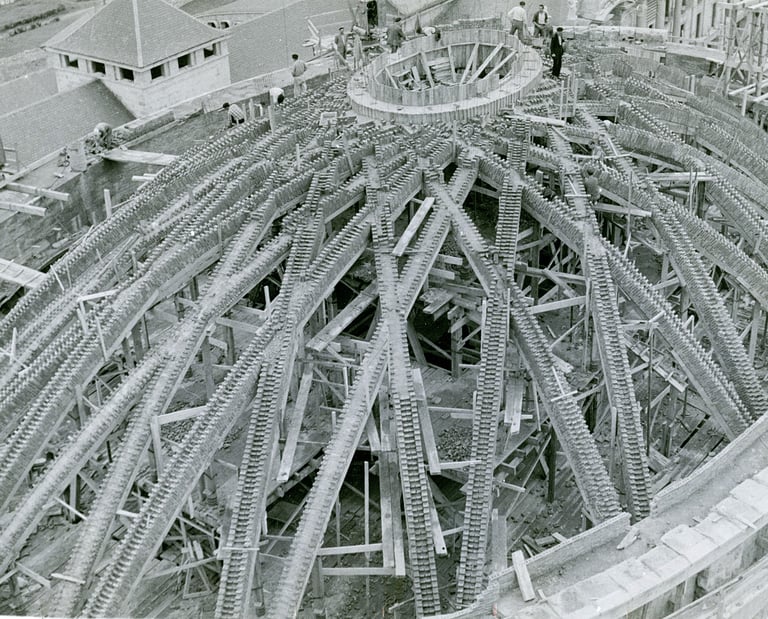 serie fotográfica DE LA CUPULA DE LA IGLESIA por el interior en su fase constructiva