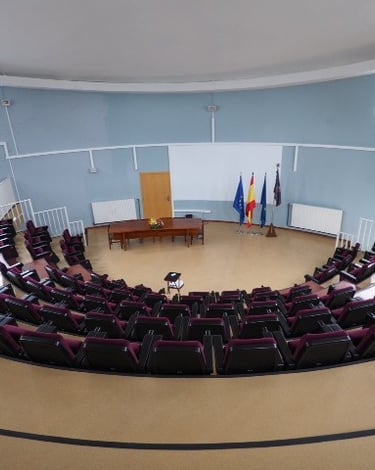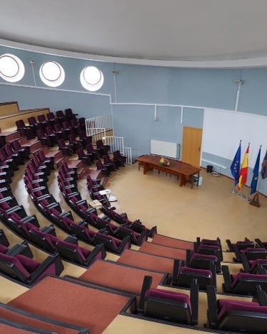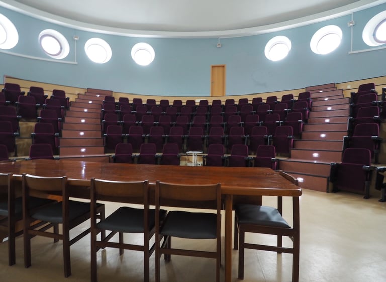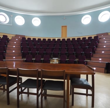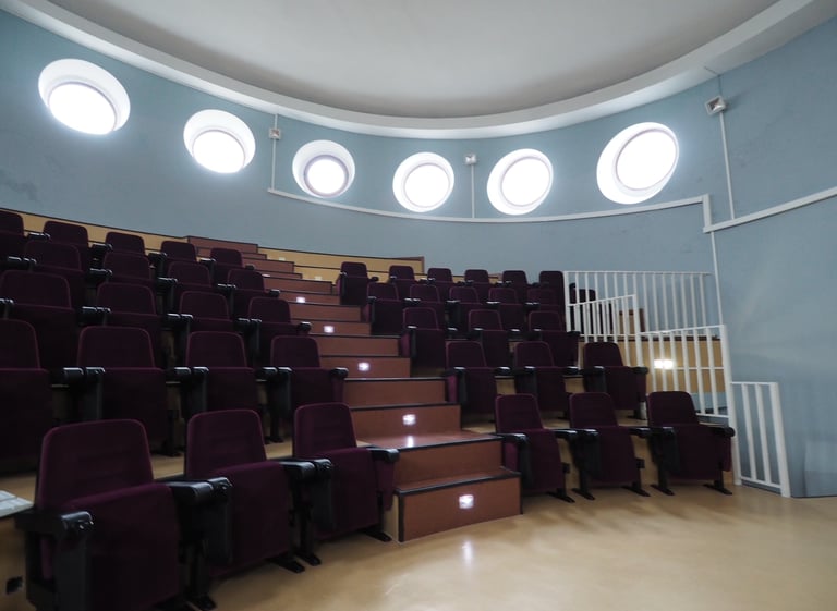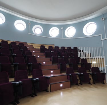 estos anfiteatro , son utilizados por la facultad de comercio, turismo y ciencias sociales " Jovellanos " . dependiente de la universidad de Oviedo. además de estos anfiteatros esta facultad ocupa un espacio de unos 18.000 metros cuadrados, de instalaciones aulas y despachos , donde cerca de 1500 alumnos estudian en esta sede universitaria , además de los estudiantes de la escuela universitaria de trabajo social dentro de este mismo espacio de la universidad laboral de Gijón