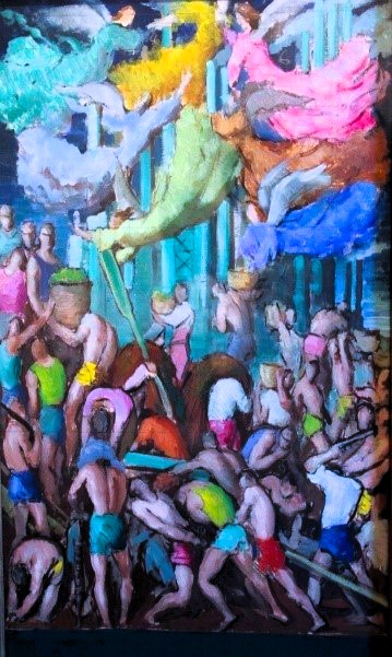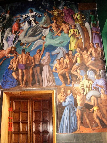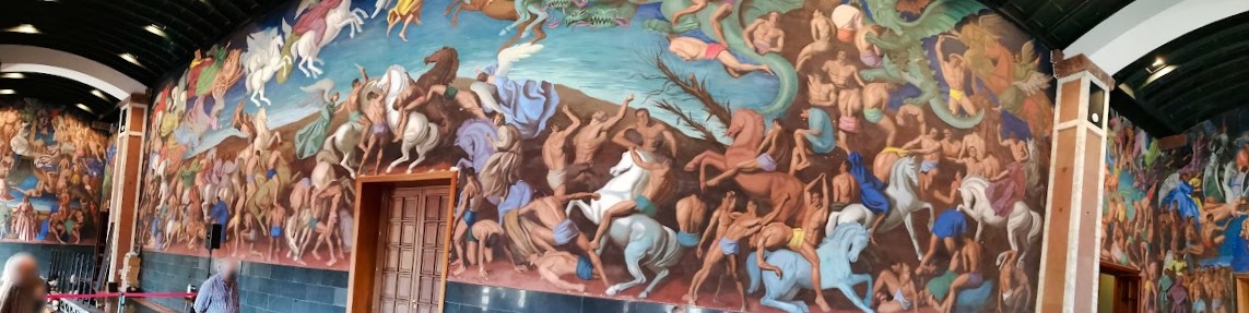 LOS DERROTADOS . Este mural esta relacionado con el paño mural de Los Condenados del italiano Luca Signorelli , que se encuentra en el interior de la catedral de Orvieto ( Italia) .Se trata de una creación en la que los detractores se muestran abatidos por las fuerzas malignas.