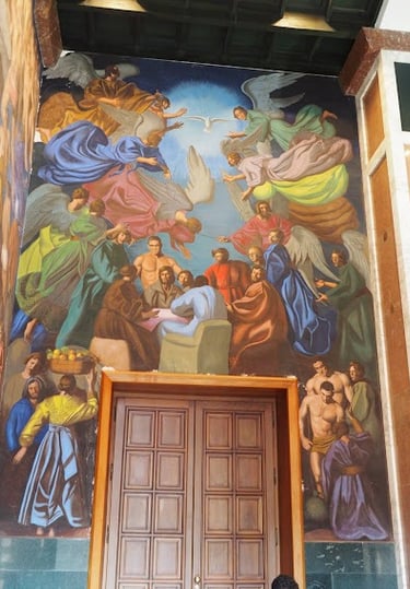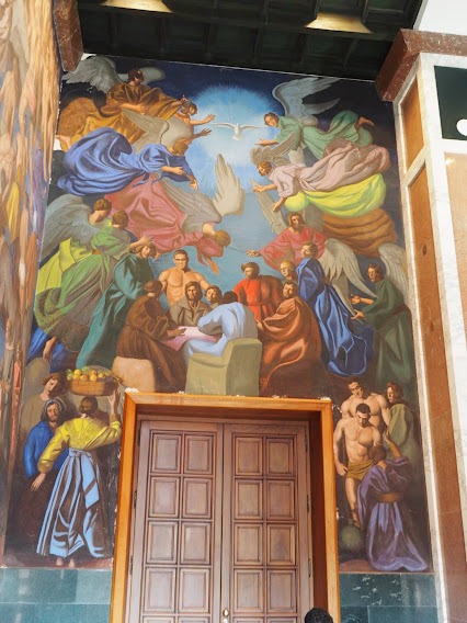 EL PATRONATO. Este mural ,da protagonismo a los fundadores e impulsores de la institución. El pintor toma como base de inspiración la representación evangélica de la Santa Cena